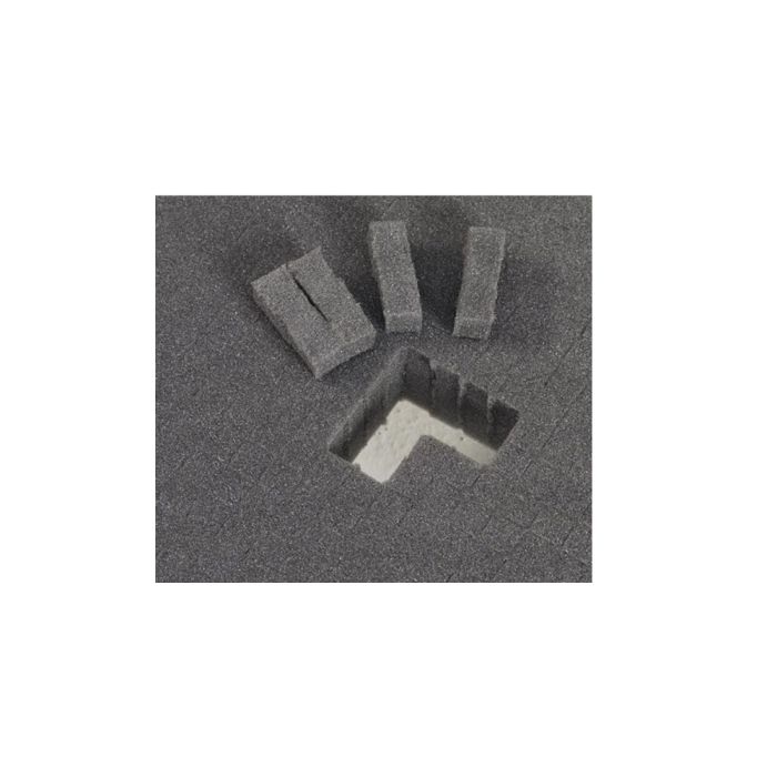 Deze blokplaat wordt ook wel plukschuim genoemd en de afmeting van de gehele plaat is 570 x 370 x 50 mm. Het plukschuim wordt gebruikt voor onze RAKO-koffers en -bakken ter bescherming van de inhoud bij bijvoorbeeld kostbare of breekbare producten. De schuimplaat bestaat uit drie lagen vanuit de dikte gezien. De onderste laag is 15 mm, de middenlaag (die ongestanst is en dus het geheel bij elkaar houdt) is 20 mm en de bovenste laag is 15 mm waardoor de totale breedte op 50 mm uitkomt. De schuimplaat bestaat uit gestanste blokjes van 15 x 15 x 15 mm uit zowel de boven- als onderzijde. Deze gestanste blokjes zijn eenvoudig los te plukken waardoor jij zelf de grootte en soort opening in het schuim kunt bepalen. Tot slot is het zelfs mogelijk om de blokjes in strookvorm van 15 x 15 x 50 mm los te plukken zoals in de afbeelding is te zien.