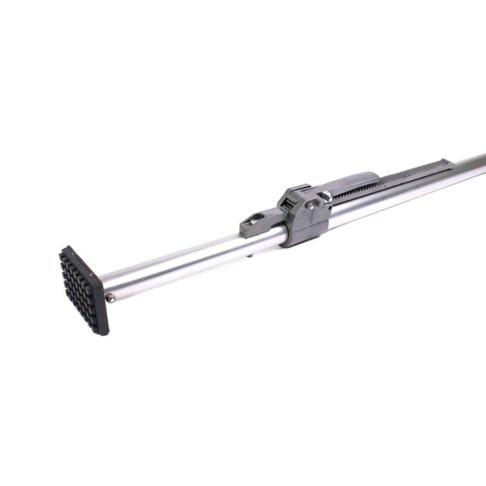 De standaardversie van de cargokeeper van ons eigen merk PVHS heeft een afmeting 2.40 - 2.77 meter en de aluminium buis een diameter van 42 mm. Hij kan zowel horizontaal als verticaal ingezet worden en is standaard voorzien van 2 rubberen voetjes. In deze cargokeeper zit ook een veer die samen met de oppervlakte van de voetjes voor de allerbeste drukverdeling zorgen tegen de wanden en het plafond. Met de hendel zorg jij voor een nauwkeurige afstelling van de 37 centimeter verstelbare cargokeeper.