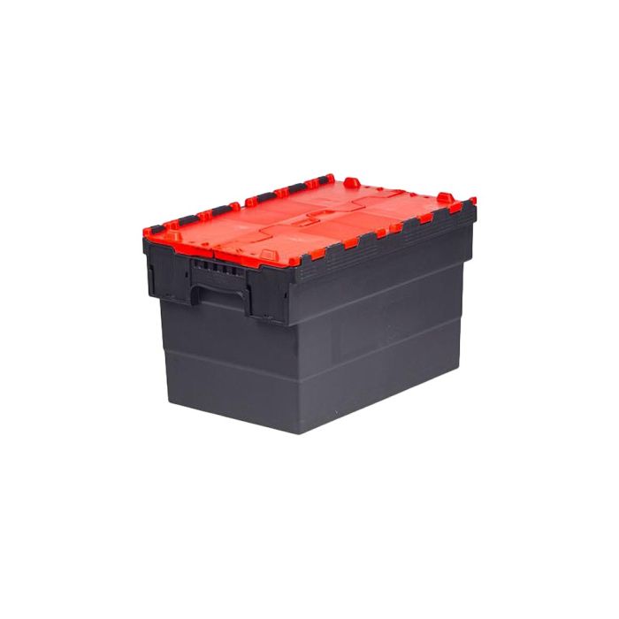 Deze oerdegelijke, stapel- en nestbare distributiebak met 65 liter inhoud heeft een gesloten bodem en gesloten wanden en is voorzien van 2 gemonteerde dekselhelften. Indien de bak leeg is, hang jij de dekselhelften naast de bak; nu kun jij de bakken in elkaar stapelen. Na het vullen van de bak klap jij de deksels boven op de bak weer dicht. Jij kunt de deksels door middel van verzegelingen afsluiten.