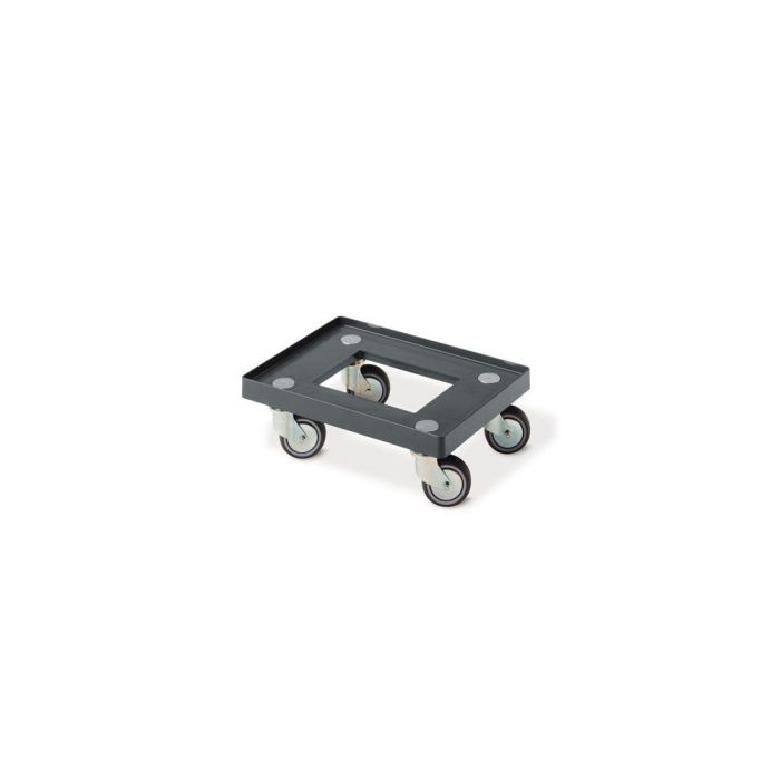 Deze kunststof onderzetwagen is gemaakt voor o.a. RAKO en E-Line koffers/bakken, met een buitenmaat van 400 x 300 mm. Deze transportroller, ook wel bakkenwagentje genoemd, loopt zeer licht. Hij is voorzien van 4 zwenkwielen. De 80-270-1 heeft een open bodemplaat. Belastbaar tot maximaal 100 kg.