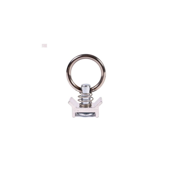De eindfitting 5018, ook wel single studfitting met ring genoemd. Geschikt voor alle aluminium vliegtuigrails. Aan deze ring kun jij spanbanden van 25 mm breedte met haken inhaken of deze kan worden gemonteerd aan spanbanden.