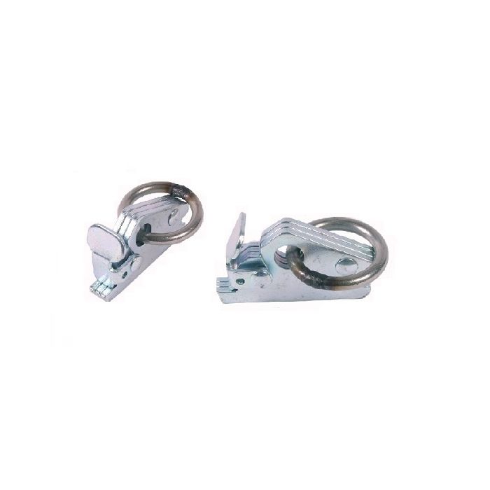 Deze sleufgatfitting heeft een ring die kan dienen als aanknopingspunt voor bijvoorbeeld een sjorband of (zelfoprollende) spanband. De sleufgatfitting ook wel eindfitting met ring genoemd, is te gebruiken door de knop naar voren te duwen, waardoor de fitting ontgrendelt wordt en hij in en uit de rails kan worden gehaald.