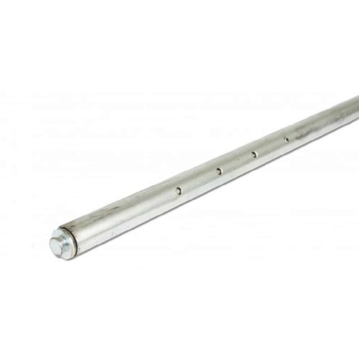 Deze telescoopstang is verstelbaar, dit betekent dat de stang tussen 2.21 - 2.59 meter op meerdere lengtes te gebruiken is. Bij een van de uiteindes van de telescoopstang zitten meerdere gaten. Als jij een van de andere gaten wil gebruiken, dien je de spanstift uit de telescoopstang te slaan. Vervolgens sla jij de spanstift in een ander gat om de plug te borgen. De spanstift kan eventueel ook worden vervangen door een bout.