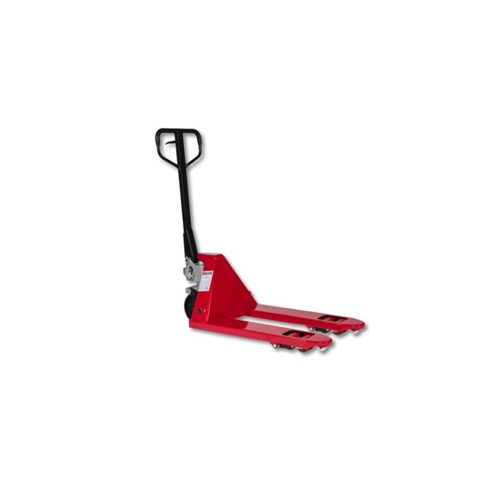 Omschrijving Weldon handpalletwagen 2500 kg, polyurethaan stuurwiel, rood