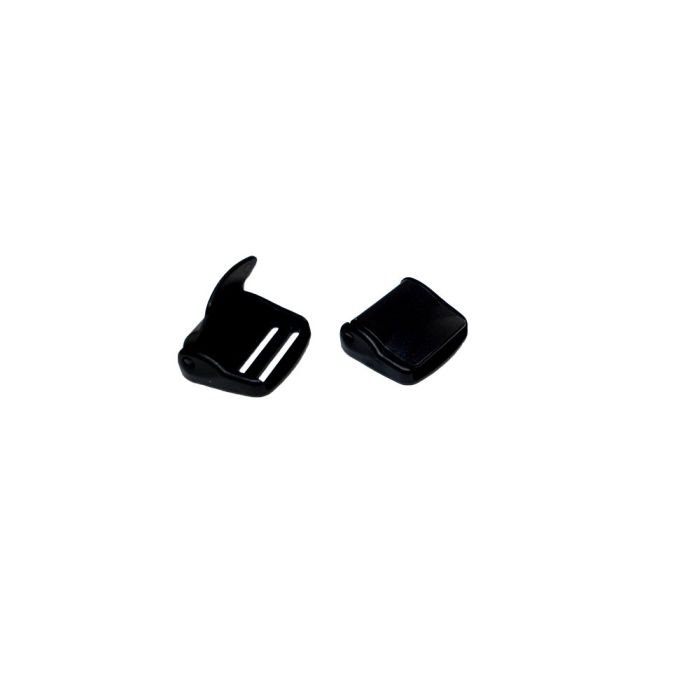 Zwarte, kunststof klemgesp voor 25 mm band.